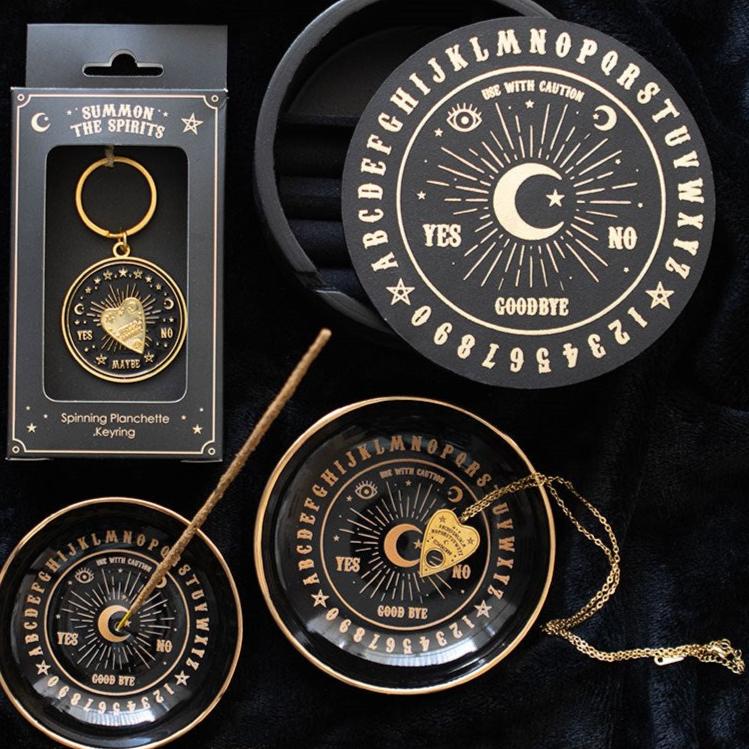 This enchanting black incense dish features a talking board design in a premium gold finish. The holder is thoughtfully designed to accommodate both incense sticks and cones, with a small hole in the centre for sticks and a flat stable surface suitable for burning cones. A beautiful finishing touch for any home with mystical decor.